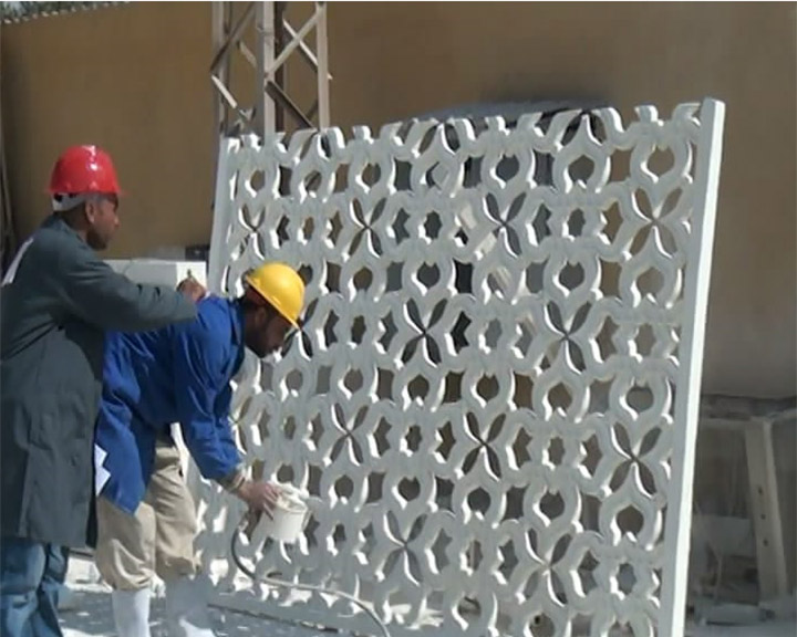 1- The company can manufacture and deal with the traditional and production of the painted GRC sections using all types of paints according to the request of the customer, the company’s factories have trained workers and special paint workshops for all products.